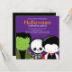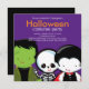 Start your Children's Halloween party off right with our cute Happy Halloween Party Invitation for kids featuring the cutest little skeleton Frankenstein & dracular set on an purple background. Available with other costume kids in our shop at www.celebrateitholidays.com. Customise with your personal information & you're all set to go. © Zenware Designs