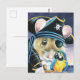 Halloween Costume Pirate Mouse Watercolor Art Postcard