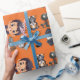 This is an orange-dominant Halloween themed wrapping paper with some cute Halloween illustrations that consists of dogs and children.
