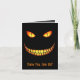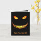 Scary eyes and a smile like the Cheshire cat adorns this black invite. The inside is dark grey with orange text and lots of customisable fields to add all the when, where and how.