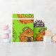 Halloween party wrapping paper with creepy pumpkin faces with nails through their heads, blood splatter and creepy crawlies