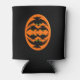 This awesome can cooler features an orange oval with six crows in it. Each crow has yellow eyes with black pupils and outstretched wings. The crows are flying towards each other forming an oval shape. The background is black.