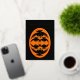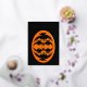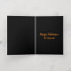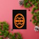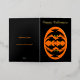 This awesome Foil Halloween card features an orange oval with six crows in it. Each crow has yellow eyes with black pupils and outstretched wings. The crows are flying towards each other forming an oval shape. The background is black. There is custom text inside so you can personalise this card. The custom text on the front is in beautiful gold foil.