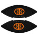 This awesome football features an orange oval with six crows in it. Each crow has yellow eyes with black pupils and outstretched wings. The crows are flying towards each other forming an oval shape. The background is black.