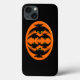 This awesome iPhone case features an orange oval with six crows in it. Each crow has yellow eyes with black pupils and outstretched wings. The crows are flying towards each other forming an oval shape. The background is black.