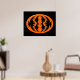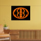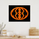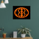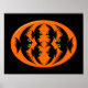 This spooky Halloween design features an orange oval with six crows in it. Each crow has yellow eyes with black pupils and outstretched wings. The crows are flying towards each other forming an oval shape. The background is black and the border is orange. The design is available on several different sizes of poster. Why not purchase this poster and trace around the crows to make templates for a Halloween mobile then put the poster up on the wall and hang your mobile from the ceiling.