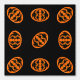 This awesome wallpaper features an orange oval with six crows in it. Each crow has yellow eyes with black pupils and outstretched wings. The crows are flying towards each other forming an oval shape. The background is black.