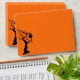A silhouette of a spooky witch on a broomstick and an owl on twisted tree pop out of the envelope when you open it. You will find the same owl and the tree in the left bottom corner of the outside (front) of the envelope and the witch on the back top flap. Orange background.