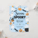 Your not-so-little pumpkin is turning seven—let’s celebrate in spooky style! This “Seven and Spooky” Halloween birthday invitation features adorable ghosts, pumpkins, spider webs, candy corn, and bones for the perfect mix of creepy and cute.