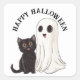 Halloween Cute Ghost and Black Cat Square Sticker
