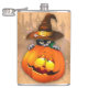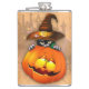 Halloween Cute Kitty Witch and Pumpkin Friend Hip Flask