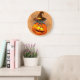 Halloween Cute Kitty Witch and Pumpkin Friend Large Clock