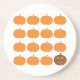 A cute patch of festive orange pumpkins are joined by a happy little holiday jack o' lantern at the end of the line. Happy Halloween!