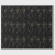 Halloween gift wrap or party decoration featuring rows of funny skeletons dancing.