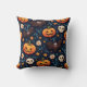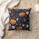 Bright orange pumpkins, black bats, and white skulls combine to create a strong contrast, while white flowers and branches add detail. It is an attractive design with a touch of cuteness in an overall dark and mysterious atmosphere.