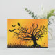 Halloween scene with orange background. Includes bats, jack-o-lantern, and tree. www.giftideas505.com