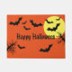 Halloween door mat shown in orange with a bats and moon print. Customise this mat or buy as is.