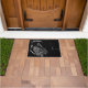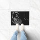 Door mat shown with a black background colour and a Halloween haunted house and grim reaper print.