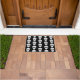 Door mat shown with a black background colour and a Halloween haunted skulls print.