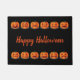 Door mat shown with a Black background colour and a Halloween pumpkins art print.
