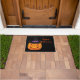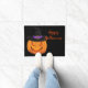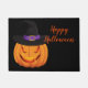 Halloween doormat is shown in Black with a festive pumpkin witch print.
