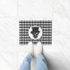 This Halloween doormat is shown in a black and white harlequin diamond pattern print