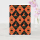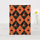 Halloween orange, black, and green harlequin pattern. This pattern has the quote from Macbeth, "Double, double, toil and trouble," along with images of cauldrons and witch's hats. Great for quirky Halloween invitations and greetings! Double, Double, Toil and Trouble Harlequin Design © 2019 Regina Blankenship.