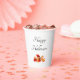 Fall leaves paper cups, with a red and gold fall leaves design and customisable typography lettering. An elegant addition to your autumn or Halloween party.
