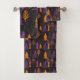 Dress up your bathroom for Halloween with these towels featuring a pattern of hand-drawn style evergreen trees in Halloween colours: orange, purple and charcoal grey against a black background is perfect for adding a touch of Halloween cheer to your day.