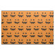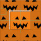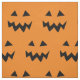 Halloween fabric with carved pumpkin face pattern. Scary Jack o lantern print textile. Orange and black design with pumpkin head carving. Fun DIY party supplies and accessories for adults and kids. Make your own costume outfit.