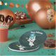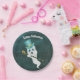 This paper plate has a fancy white ghost floating in a star filled night sky wearing a blue top hat and holding a black and gold cane topped with a gold skull. Customise the Happy Halloween text with the template.