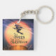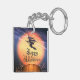 A witch flying across the sky with a happy Halloween message. This design looks really effective on these Keychain