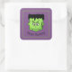 This large square sticker is shown with a Halloween Frankenstein art print.