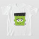 Halloween Frankenstein design T-shirts, bodysuits, mugs, magnets, tote bags, cards, stickers, and other cute Halloween gear with a green happy Frankenstein design!