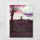Dead tree at graveyard with birds flying over the graveyard with pink skies -with semi cloud covered full moon suitable for Halloween, Gothic Birthday or a Special Party Invitation or any type of occassion. All the text is fully customisable..