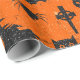 Halloween Fun Theme Wrapping Paper - Ghosts, Pumpkins, Witches, Bats & Bones - in faux Black Glitter on Orange background