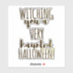 Halloween "Witching you a very haunted Halloween!" funny quote on a custom-cut sticker. Great for anyone who loves cute witches and word plays.