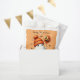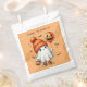 Conjuring up Halloween Goodies? This delightfully eerie Halloween Favour Bag is just the Perfect thing to keep your Halloween Treats Spooky! Elevate your Halloween Celebrations with this Cute Little Ghost that is sporting an Orange Knit Hat and Sneakers. He is holding a Pumpkin Balloon, and holding a Jack-O-Lantern Bucket for his Halloween Candy. Bats are flying high in the Night Sky. The Verse says, "Happy Halloween." Personalise this Halloween Favour Bag to your Hearts content!