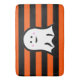 Halloween Ghost on Black and Orange Stripes Bath Mat