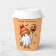Getting into the Halloween Holiday Spirit and Hosting a Halloween Party? Conjure an eerie Halloween Bash with this Spooky Cute Halloween Paper Cup! Eat, Drink and be Scary with Ghostly Tableware that will elevate your Halloween Celebrations! This Classic Halloween Paper Cup features a Cute Little Ghost that is sporting an Orange Knit Hat and Sneakers. He is holding a Pumpkin Balloon and a Jack-O-Lantern Bucket for his Halloween Candy. Bats are flying high in the Night Sky. The Verse says, "Happy Halloween." Personalise this Spellbinding Halloween Tableware to your Hearts content!