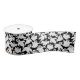 Satin ribbon is shown in a Halloween ghost print.
