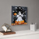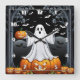 Halloween ghost surrounded by pumpkins and bats square wall clock