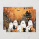 Halloween ghosts, black cats and bats, postcard