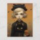 Halloween Girl With Cat Postcard