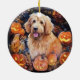 Halloween Goldendoodle With Pumpkins Scary Ceramic Ornament