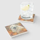 The coasters are gorgeous, a quality feel and heavy weight. They look like a precious archeological find. A rustic stone juxtaposed with a modern floral black and white print. I like the way the print goes slightly imperfect on the cut stone edges giving them a kind-of natural beauty.