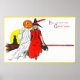 Halloween Greetings Witch on Broom with Friends Scene - was created in 1910.