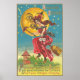 Halloween Greetings Woman On Broom Poster
