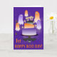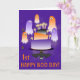 Halloween Happy 1st Boo Day! A couple of spiders drop in and a cute group of ghosts surround a birthday cake with lighted candles and a hanging black bat to celebrate an October 31st birthday on Halloween. All in bright Halloween purple and orange. Text is completely customizable, change it to whatever you want it to say.
