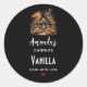 Candle, soap or kitchen product stickers with a cool and spooky illustration of a wooden haunted house. Surrounded by big orange pumpkins and trees with orange leaves. Windows with orange lights add a nice glow. Fun Halloween design.
